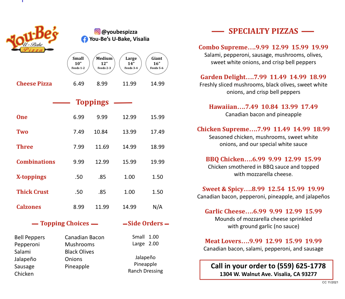 Pizza & Calzone Menu